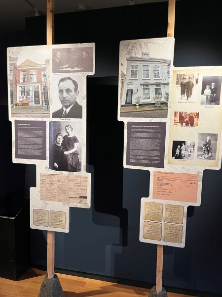 Een centrale plek in de tentoonstelling neemt het verhaal van de Stolpersteine in, de struikelstenen. Dat zijn de kleine, met messing beklede herdenkingsstenen die in trottoirs voor de laatste woonplaats van Holocaustslachtoffers worden gelegd. Elke steen draagt de naam, de geboortedatum en het lot van de persoon die werd vervolgd of vermoord door de Nazi’s. Het project werd bedacht door de Duitse kunstenaar Gunter Demnich, die het over heel Europa uitrolde.